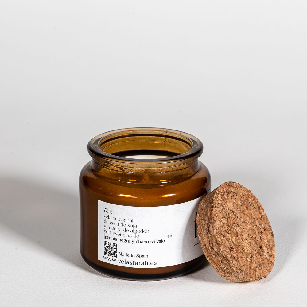 Vela de cera de soja 100% con fragancias de peonía negra y ébano salvaje. Esta combinación nos adentra en un sendero de diferentes matices de olores como el cedro, la madera y , por supuesto, el ébano asiático junto al ámbar, el lirio y la peonía; sin embargo, el incienso es su nota dominante. Es un aroma intenso y genuino, perfecto para un ambiente íntimo entre amigos con una copa de vino en la mano, o para darse un baño relajante bajo la llama intensa de nuestra vela.